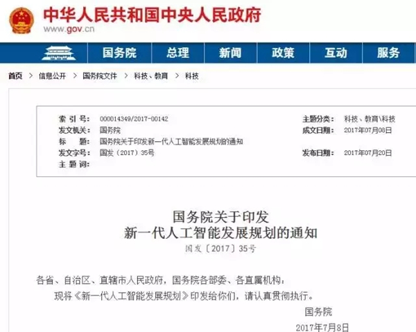 2017年7月,國務院下發《國務院關于印發新一代人工智能發展規劃的通知》,明確把人工智能列為國家發展戰略。2017年10月,黨的十九大報告中,習總書記也就人工智能、機器人產業的發展做了重要的指示。